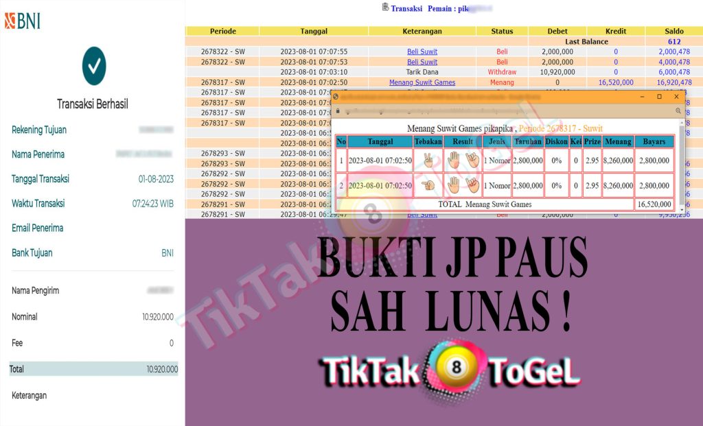 Jumlah Kemenangan : 16.520.000