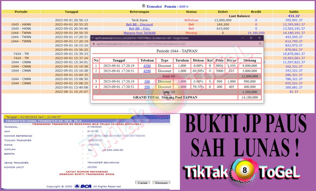berapapun kemenangan pasti akan kami bayar lunas hanya dalam hitungan menit saja.