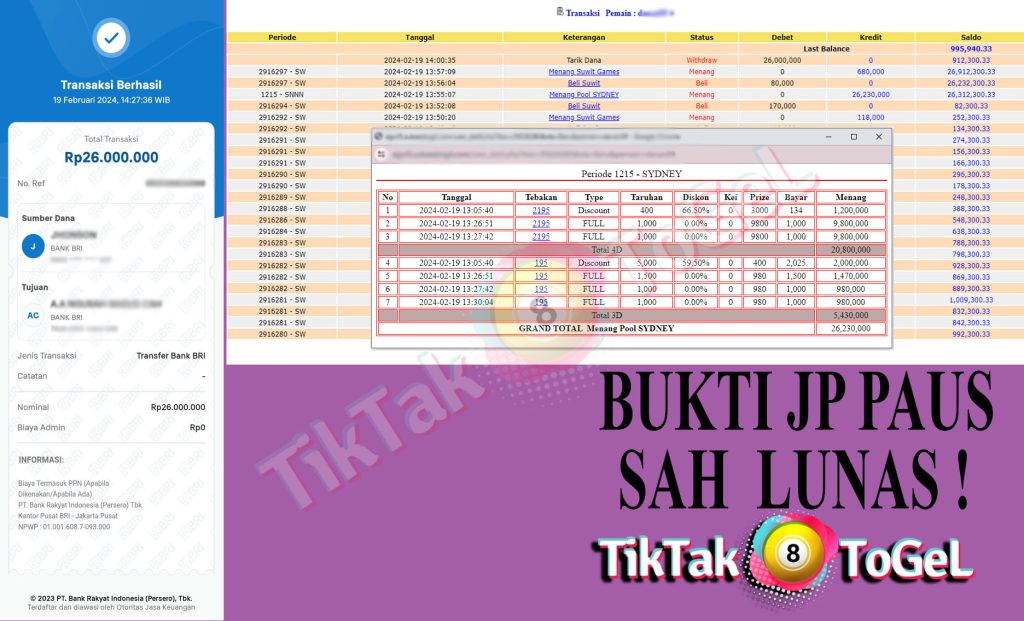 Jumlah Kemenangan : 26,230,000