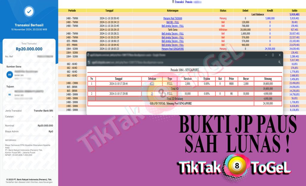 berapapun kemenangan pasti akan kami bayar lunas hanya dalam hitungan menit saja.