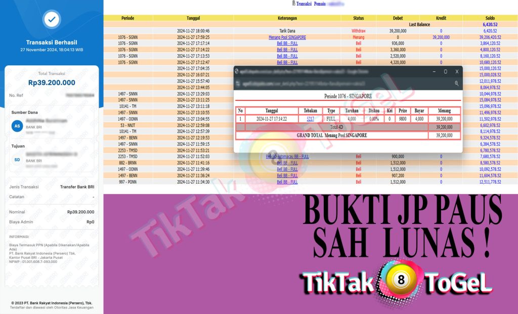 Jumlah Kemenangan : 39,200,000