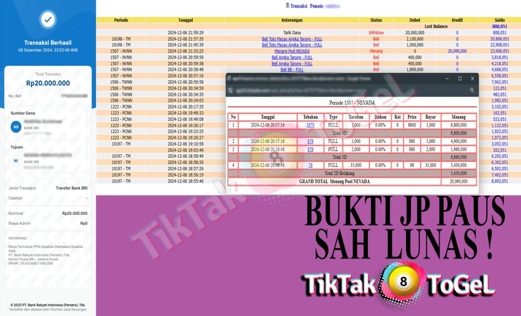 Jumlah Kemenangan : 20,090,000