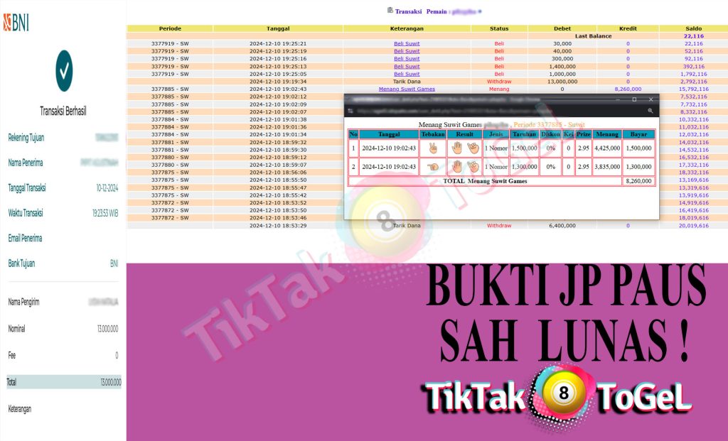 berapapun kemenangan pasti akan kami bayar lunas hanya dalam hitungan menit saja.