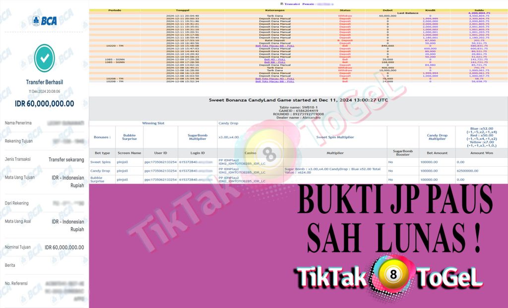 Bukti JP Paus User Onxxxxx Pada Games Sweet Bonanza CandyLand Game 11 Desember 2024