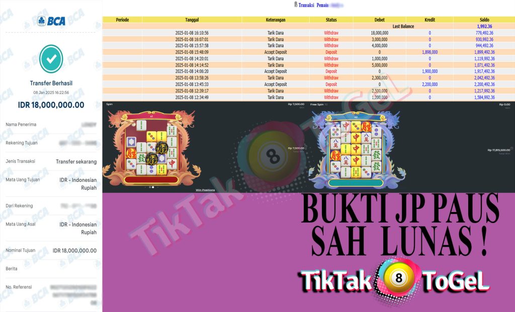 Bukti JP Paus User Lexxx Pada Slot Mahjong Wins 3 – Black Scatter 08 Januari 2025