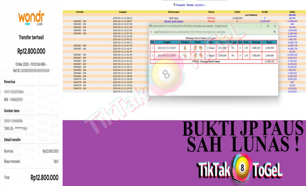 berapapun kemenangan pasti akan kami bayar lunas hanya dalam hitungan menit saja.