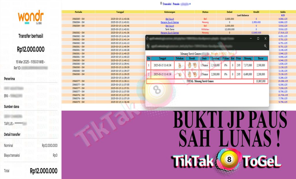 berapapun kemenangan pasti akan kami bayar lunas hanya dalam hitungan menit saja.