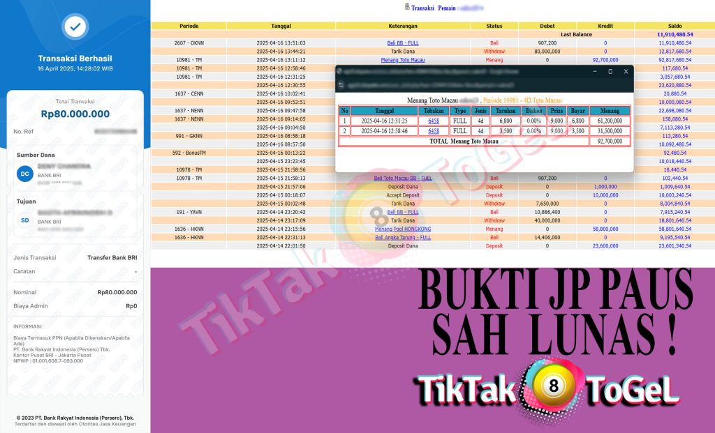 Jumlah Kemenangan : 92,700,000