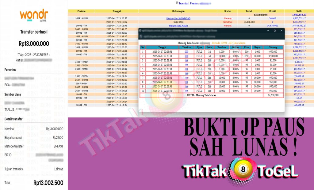 berapapun kemenangan pasti akan kami bayar lunas hanya dalam hitungan menit saja.