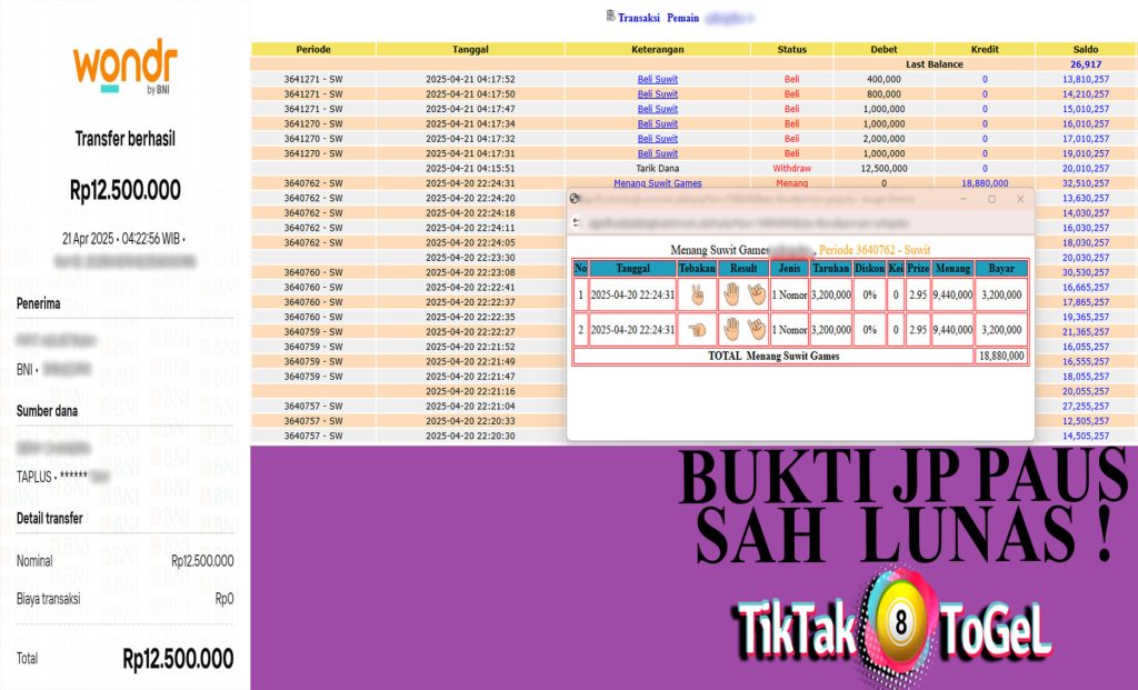 berapapun kemenangan pasti akan kami bayar lunas hanya dalam hitungan menit saja.