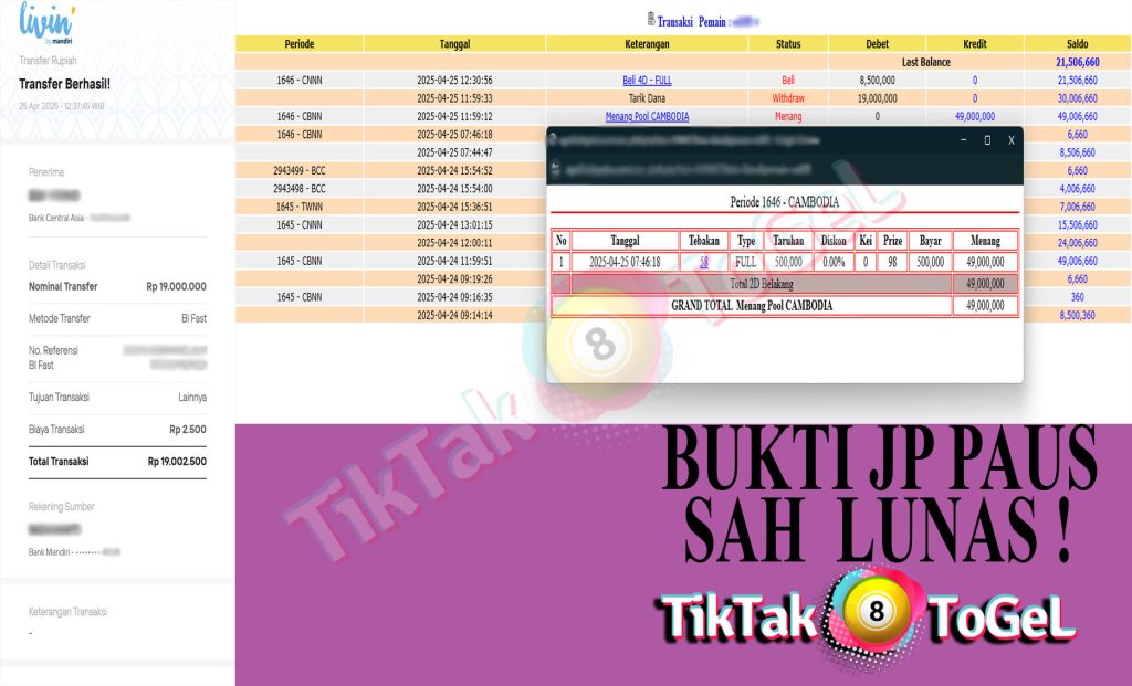 Nominal Tarik Dana : 19,000,000