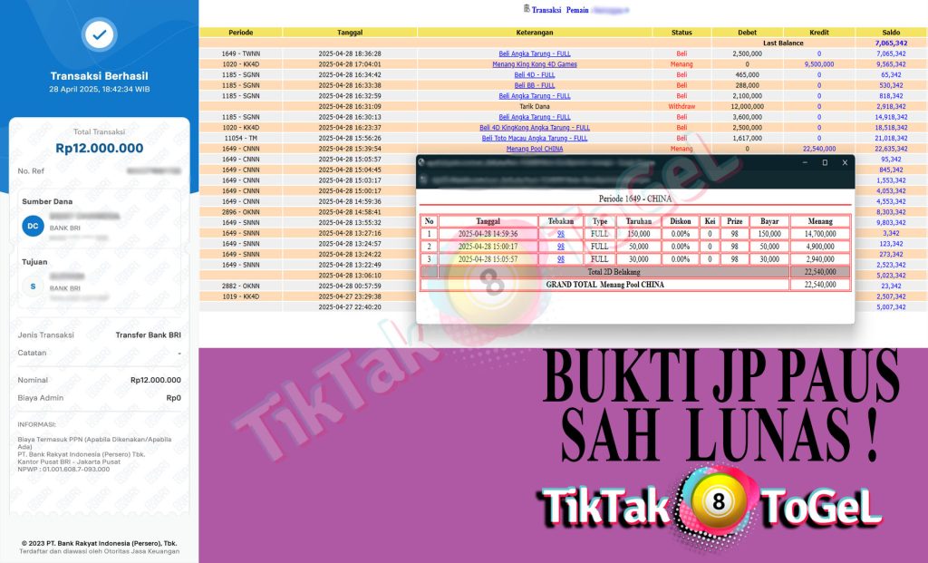 Jumlah Kemenangan : 22,540,000