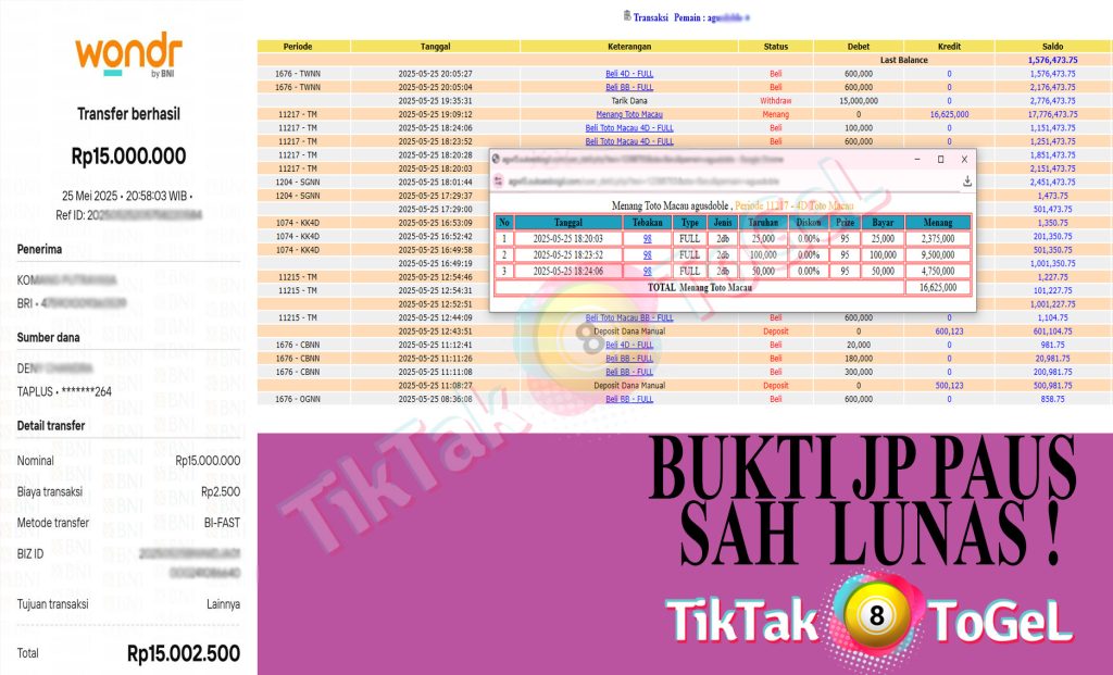 berapapun kemenangan pasti akan kami bayar lunas hanya dalam hitungan menit saja.