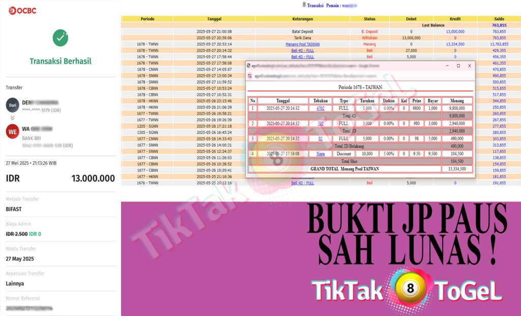 Jumlah Kemenangan : 13,334,500