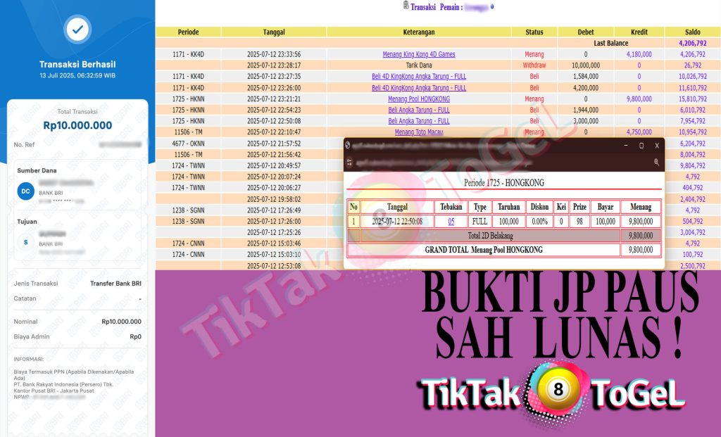 Jumlah Kemenangan : 9,800,000