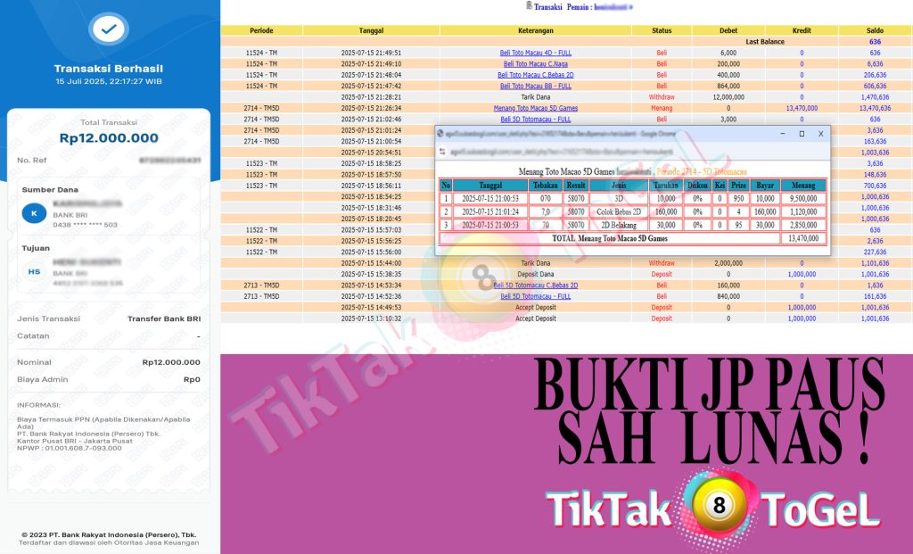 berapapun kemenangan pasti akan kami bayar lunas hanya dalam hitungan menit saja.