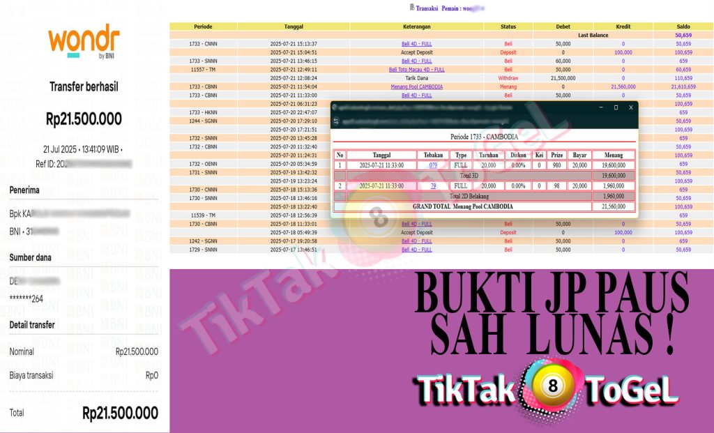 berapapun kemenangan pasti akan kami bayar lunas hanya dalam hitungan menit saja.