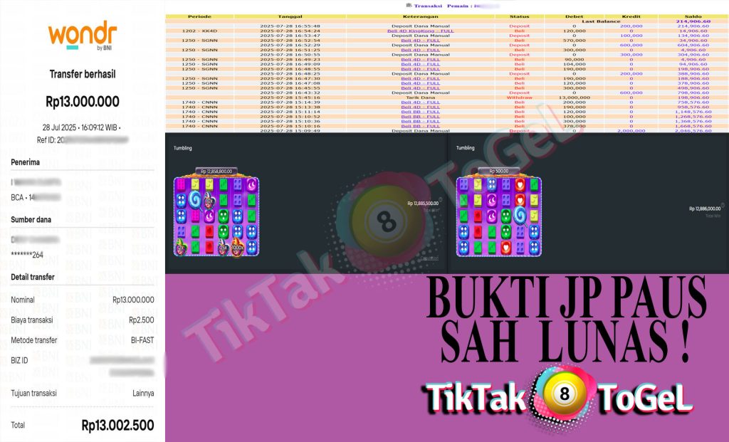 berapapun kemenangan pasti akan kami bayar lunas hanya dalam hitungan menit saja.