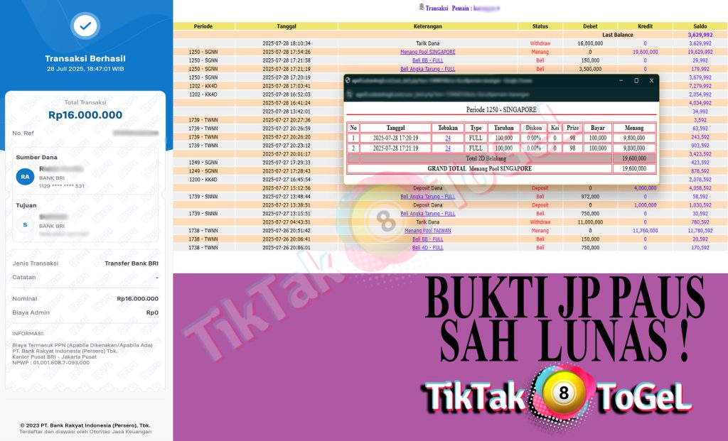 berapapun kemenangan pasti akan kami bayar lunas hanya dalam hitungan menit saja.