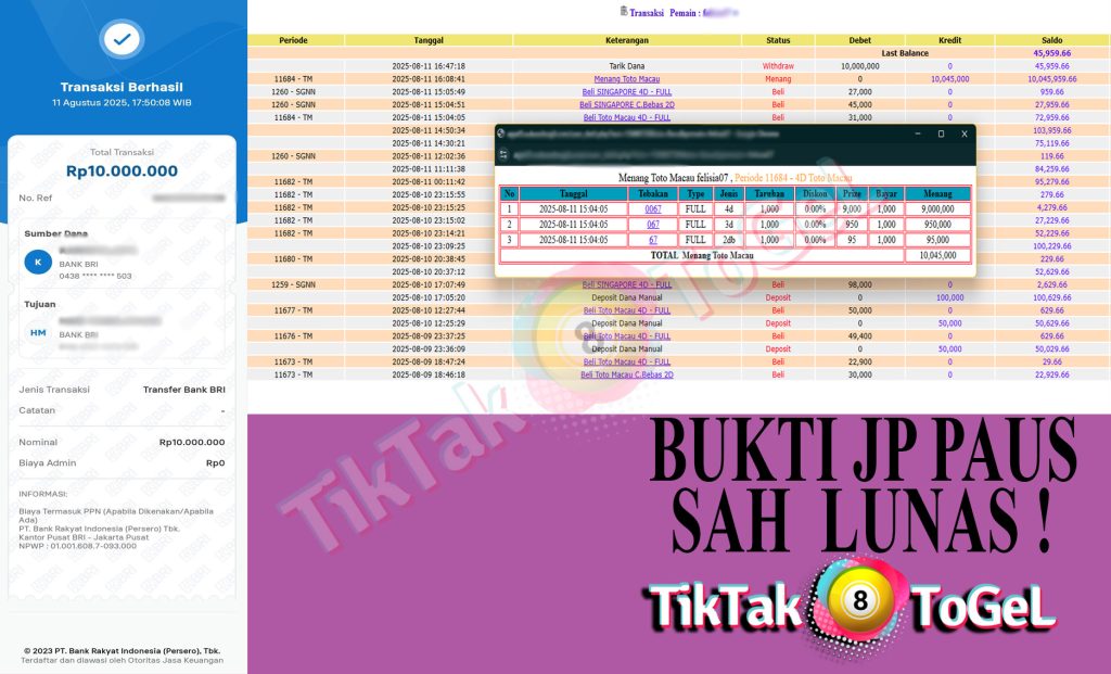 Jumlah Kemenangan : 10,045,000