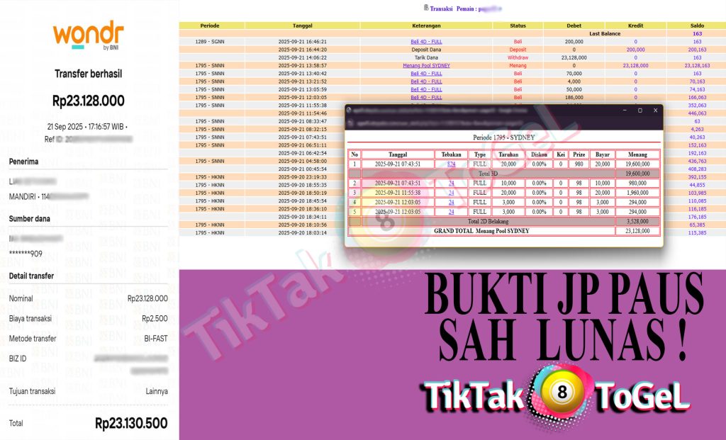 berapapun kemenangan pasti akan kami bayar lunas hanya dalam hitungan menit saja.