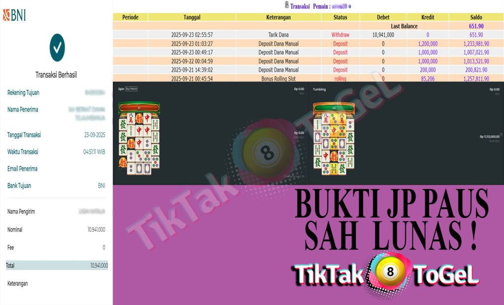 Bukti JP Paus User Sexxxxx Pada Slot Mahjong Wins2 23 September 2025