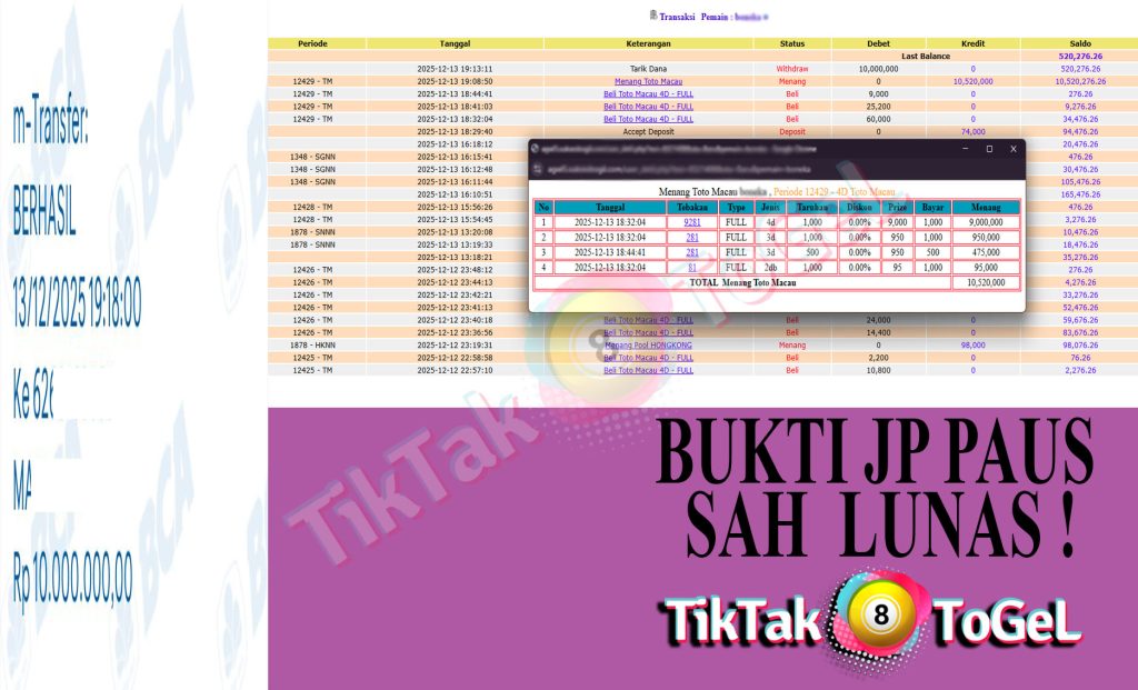 Jumlah Kemenangan : 10,520,000