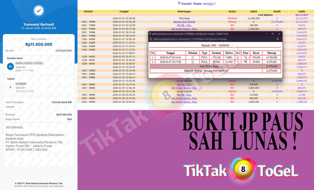 Jumlah Kemenangan : 21,070,000