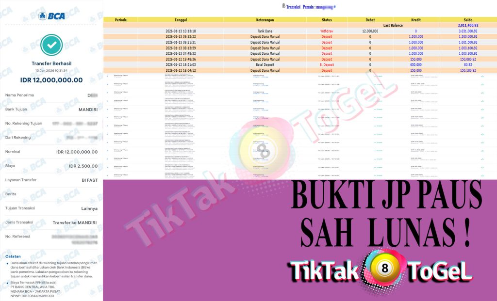 Nominal Tarik Dana : 12,000,000