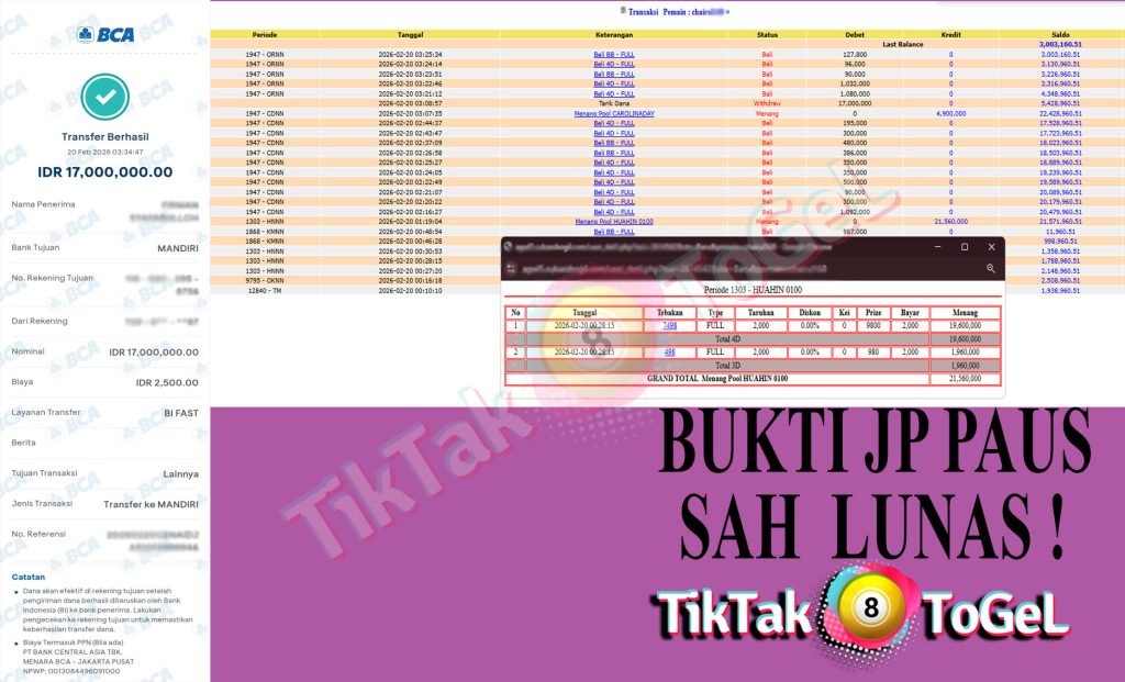 Jumlah Kemenangan : 21,560,000