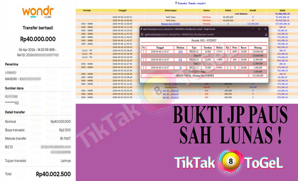 Jumlah kemenangan : 133,400,000