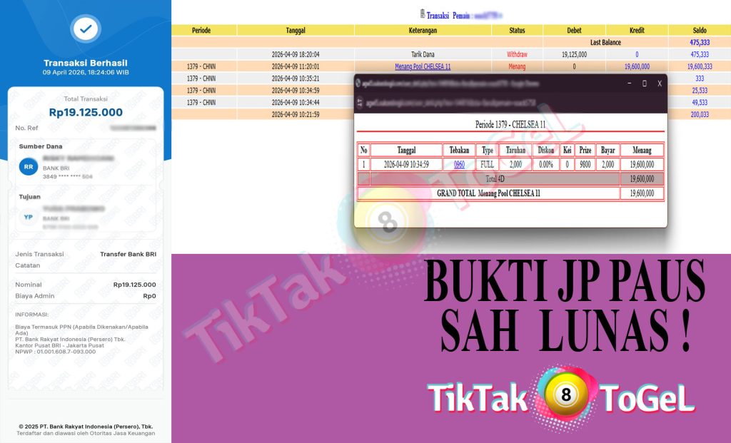 Jumlah kemenangan : 19,600,000