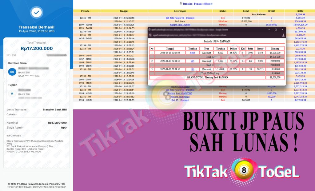 Jumlah kemenangan : 18,050,000