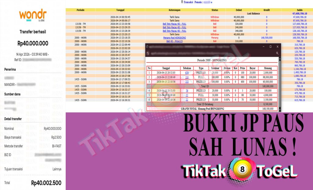 Jumlah kemenangan : 168,500,000