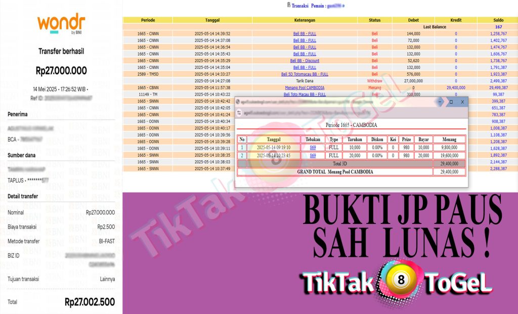 berapapun kemenangan pasti akan kami bayar lunas hanya dalam hitungan menit saja.