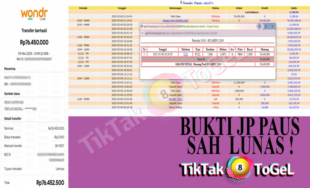 Jumlah Kemenangan : 76,440,000