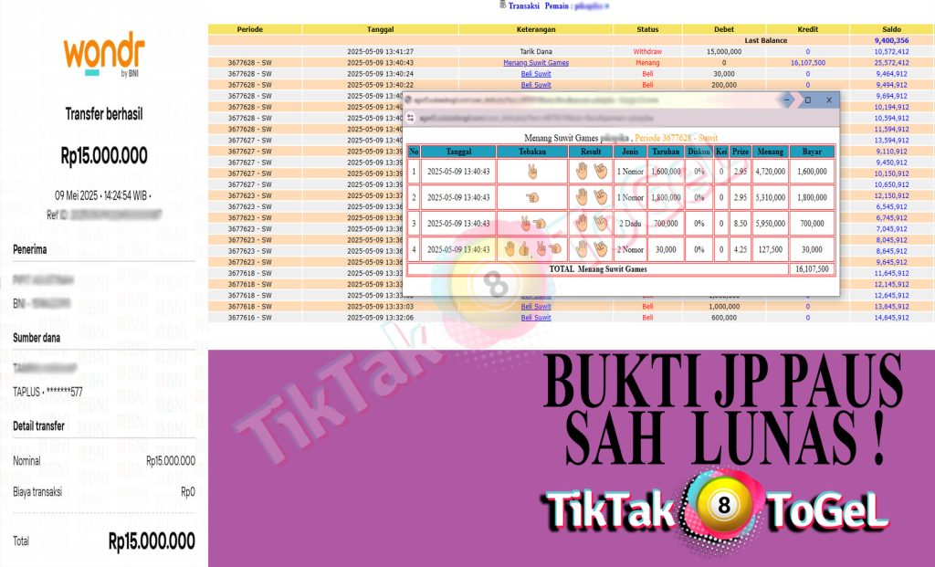 berapapun kemenangan pasti akan kami bayar lunas hanya dalam hitungan menit saja.