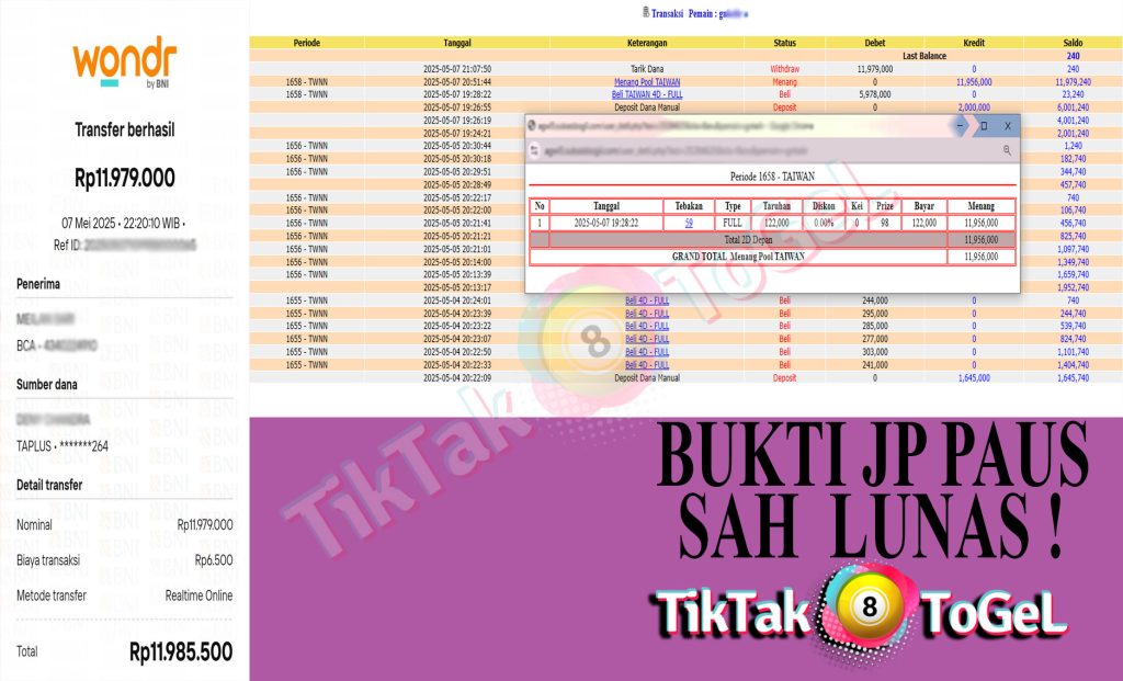 berapapun kemenangan pasti akan kami bayar lunas hanya dalam hitungan menit saja.