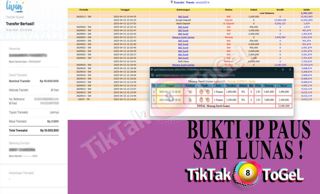 berapapun kemenangan pasti akan kami bayar lunas hanya dalam hitungan menit saja.