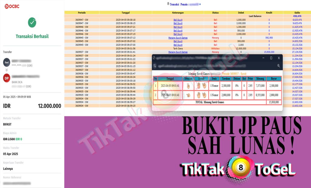 berapapun kemenangan pasti akan kami bayar lunas hanya dalam hitungan menit saja.