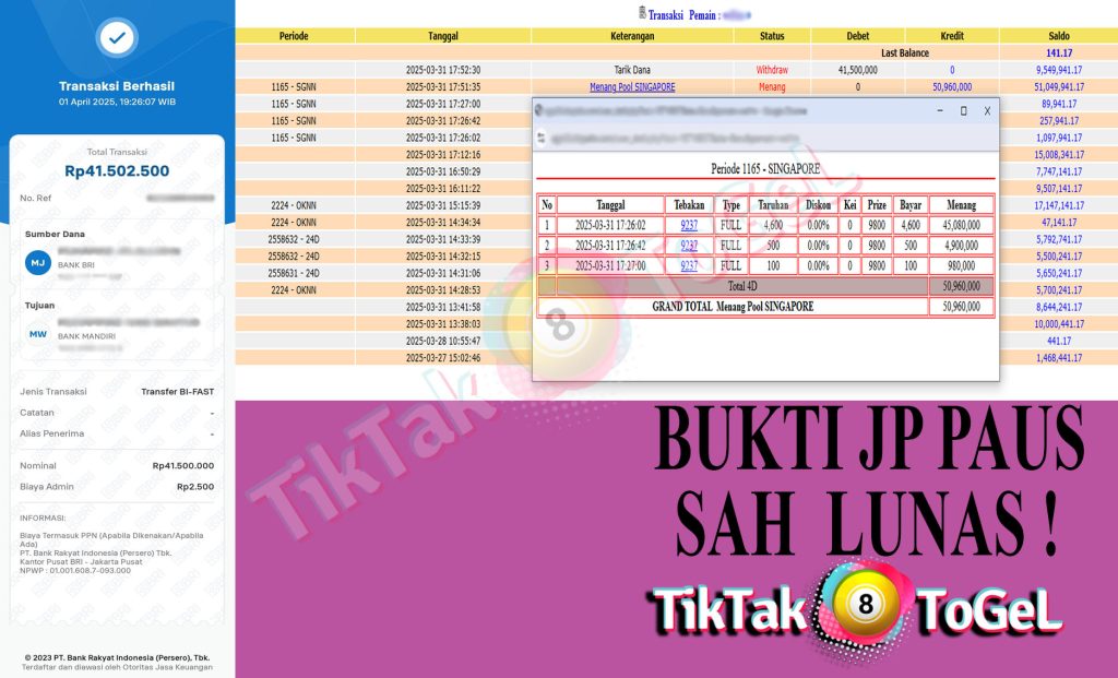 berapapun kemenangan pasti akan kami bayar lunas hanya dalam hitungan menit saja.