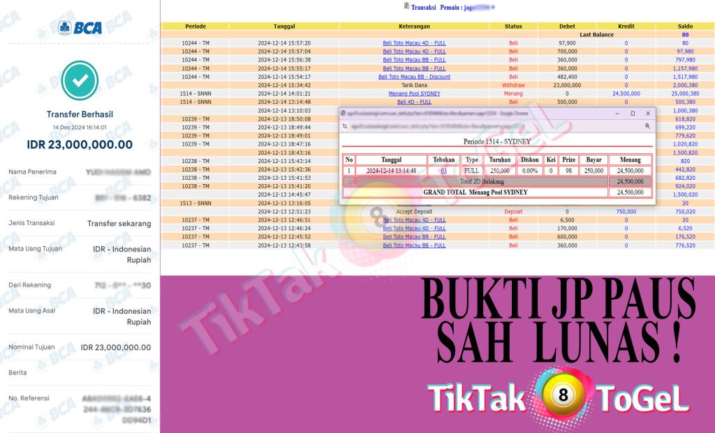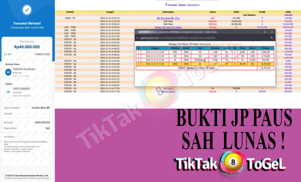 berapapun kemenangan pasti akan kami bayar lunas hanya dalam hitungan menit saja.