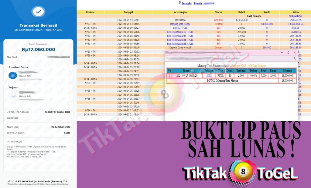 berapapun kemenangan pasti akan kami bayar lunas hanya dalam hitungan menit saja.