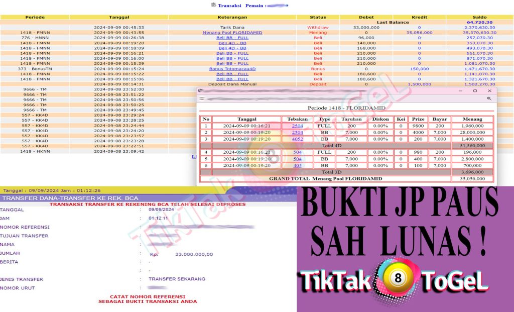 Jumlah Kemenangan : 41,169,500