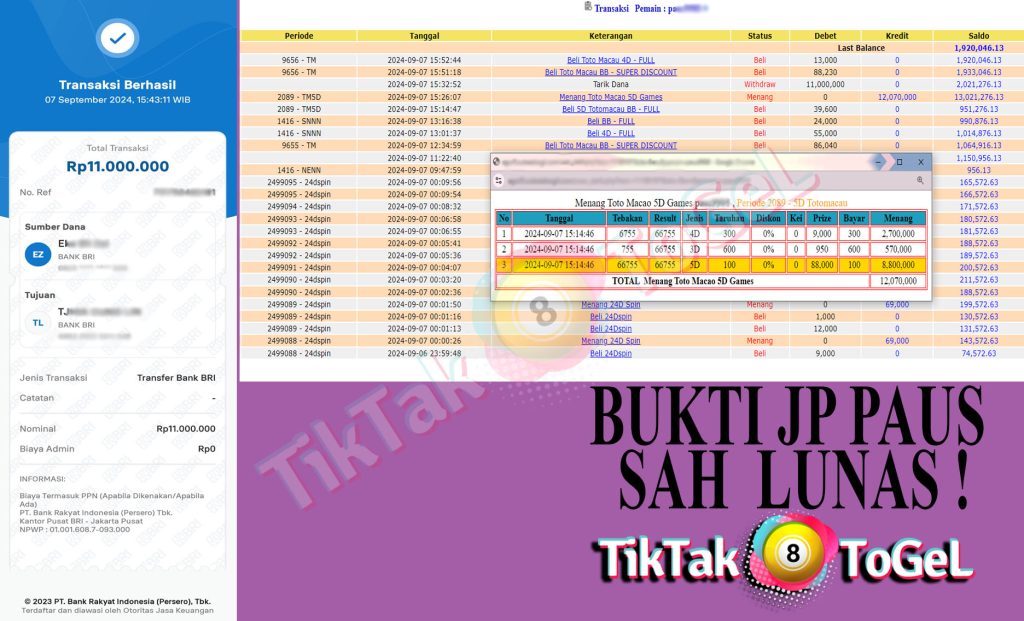 berapapun kemenangan pasti akan kami bayar lunas hanya dalam hitungan menit saja.