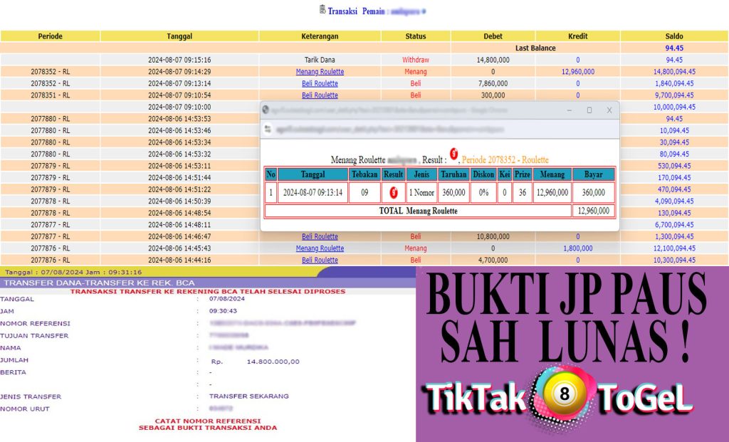 berapapun kemenangan pasti akan kami bayar lunas hanya dalam hitungan menit saja.