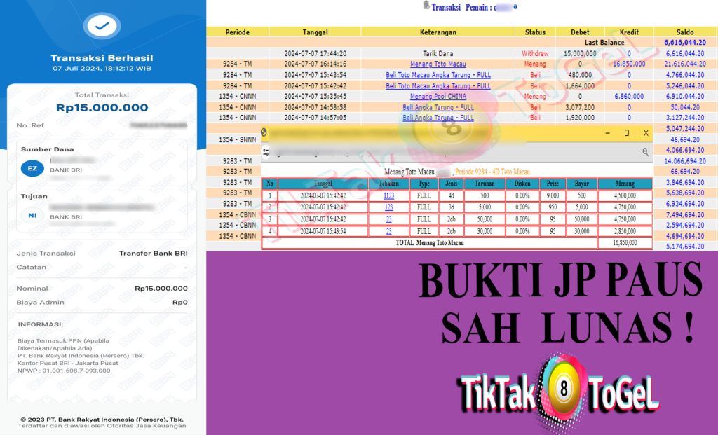 berapapun kemenangan pasti akan kami bayar lunas hanya dalam hitungan menit saja.
