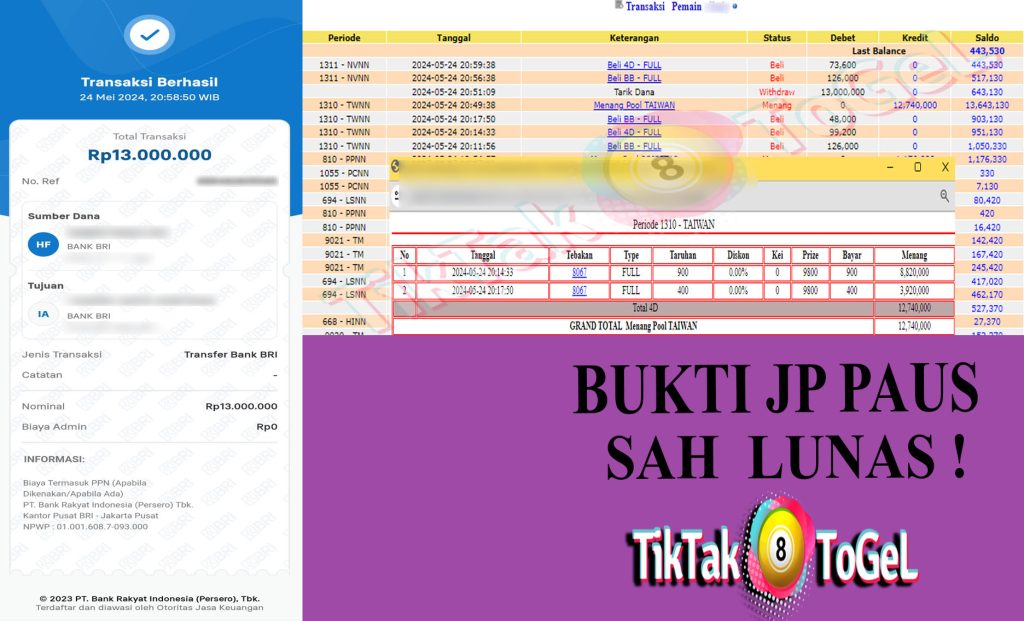 berapapun kemenangan pasti akan kami bayar lunas hanya dalam hitungan menit saja.