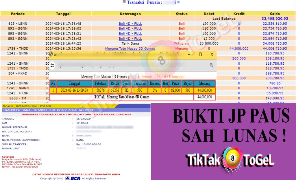 Jumlah Kemenangan : 36,741,000