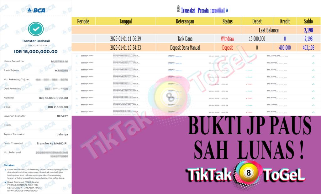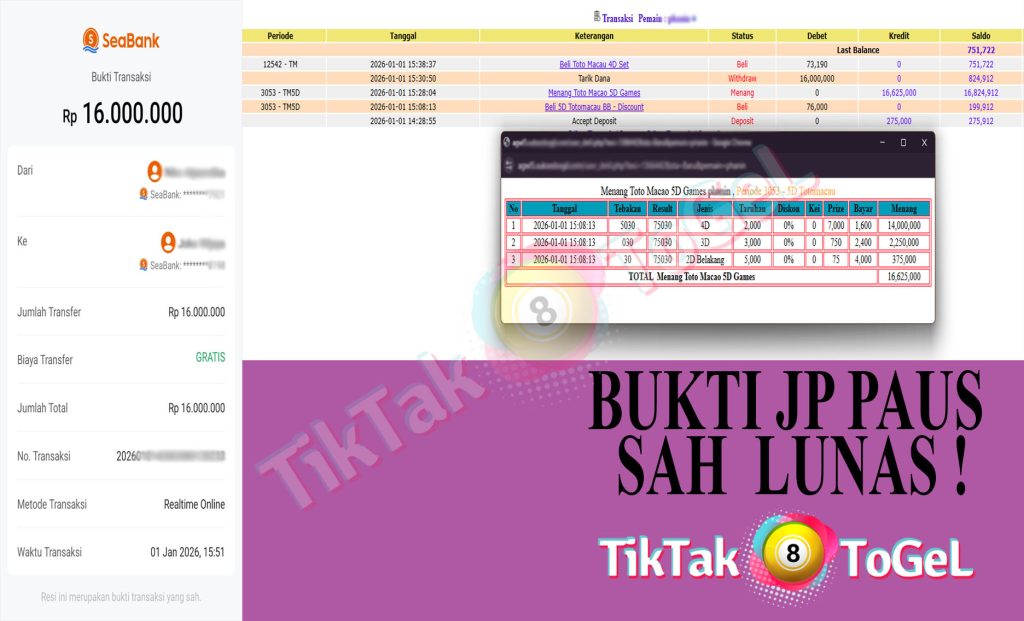 Jumlah Kemenangan : 196,630,000